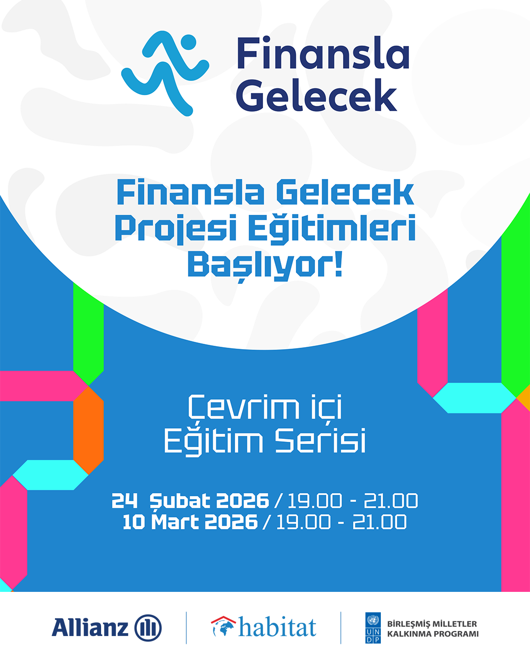 Finansla Gelecek Projesi Çevrim içi Eğitimi, 24 Şubat 2026 – 19.00/21.00 ve 10 Mart 2026 – 19.00 / 21.00 saatleri arasında gerçekleşecektir. Katılımınız için ilgili zoom bağlantısı sizinle mail ya da sms yoluyla paylaşılacaktır.